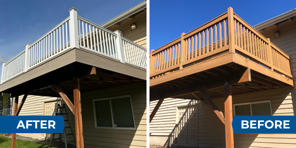 Careful removal of old decking, railings, and stairs to ensure the existing structure remains strong.